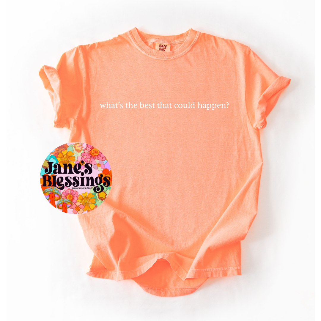 Stay positive in the "Best Could Happen" tee. Made from soft Comfort Colors fabric, this simple and comfy shirt offers a relaxed fit that keeps you comfortable all day. It’s an easygoing way to wear optimism with a playful touch.