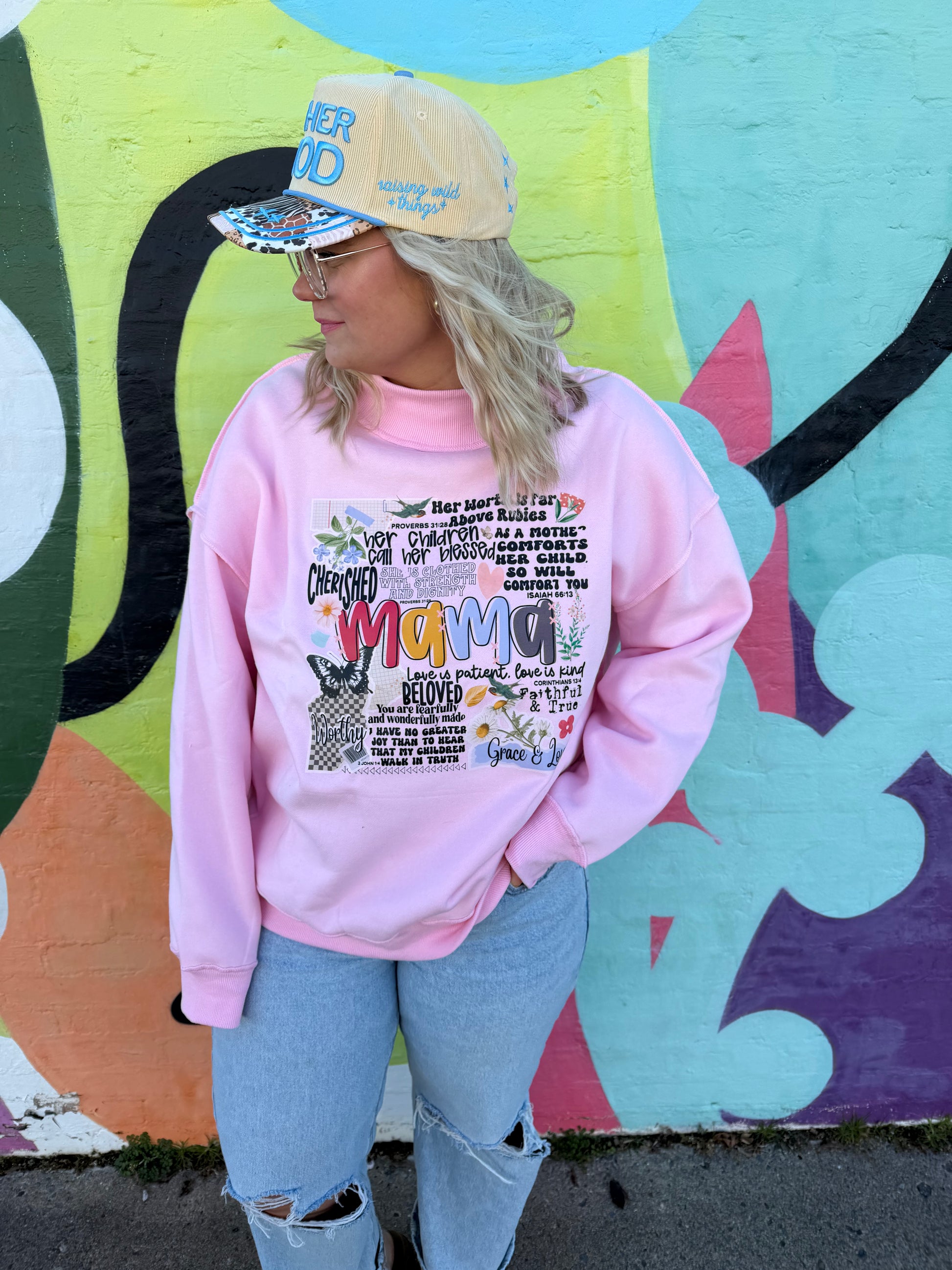 Celebrate your faith and motherhood in this charming mockneck sweatshirt featuring delightful Christian mama doodles. This playful design captures the spirit of balancing devotion with the beautiful journey of raising a family, all wrapped up in adorable hand-drawn illustrations. Perfect for moms who want to wear their hearts on their sleeves—literally—this piece combines comfort with meaningful style. Whether you're at the school pickup, church gatherings, or just living your best mama life, this sweatshirt is your cozy companion that says "I'm a believer and a proud mom" without saying a word.