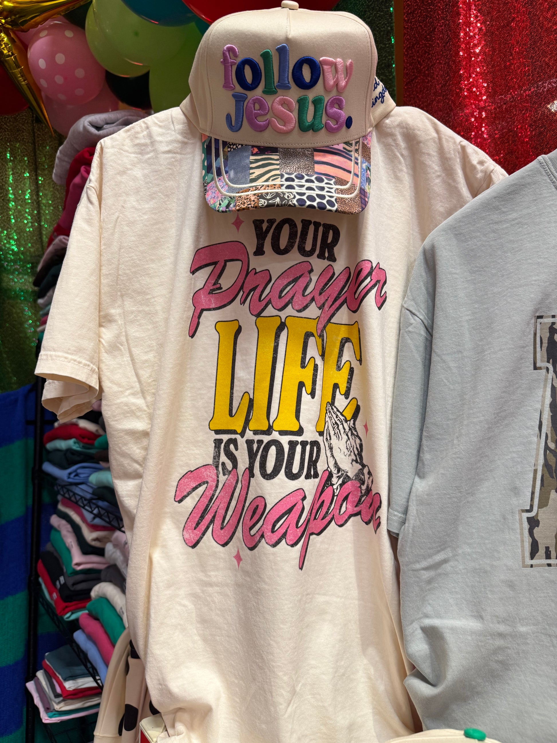 Unleash the power of prayer with our "Prayer is Your Weapon" tee or sweatshirt. Increase your spiritual strength and confidence with this powerful reminder that prayer is your most effective tool. Perfect for any devout individual looking to take their faith to the next level.