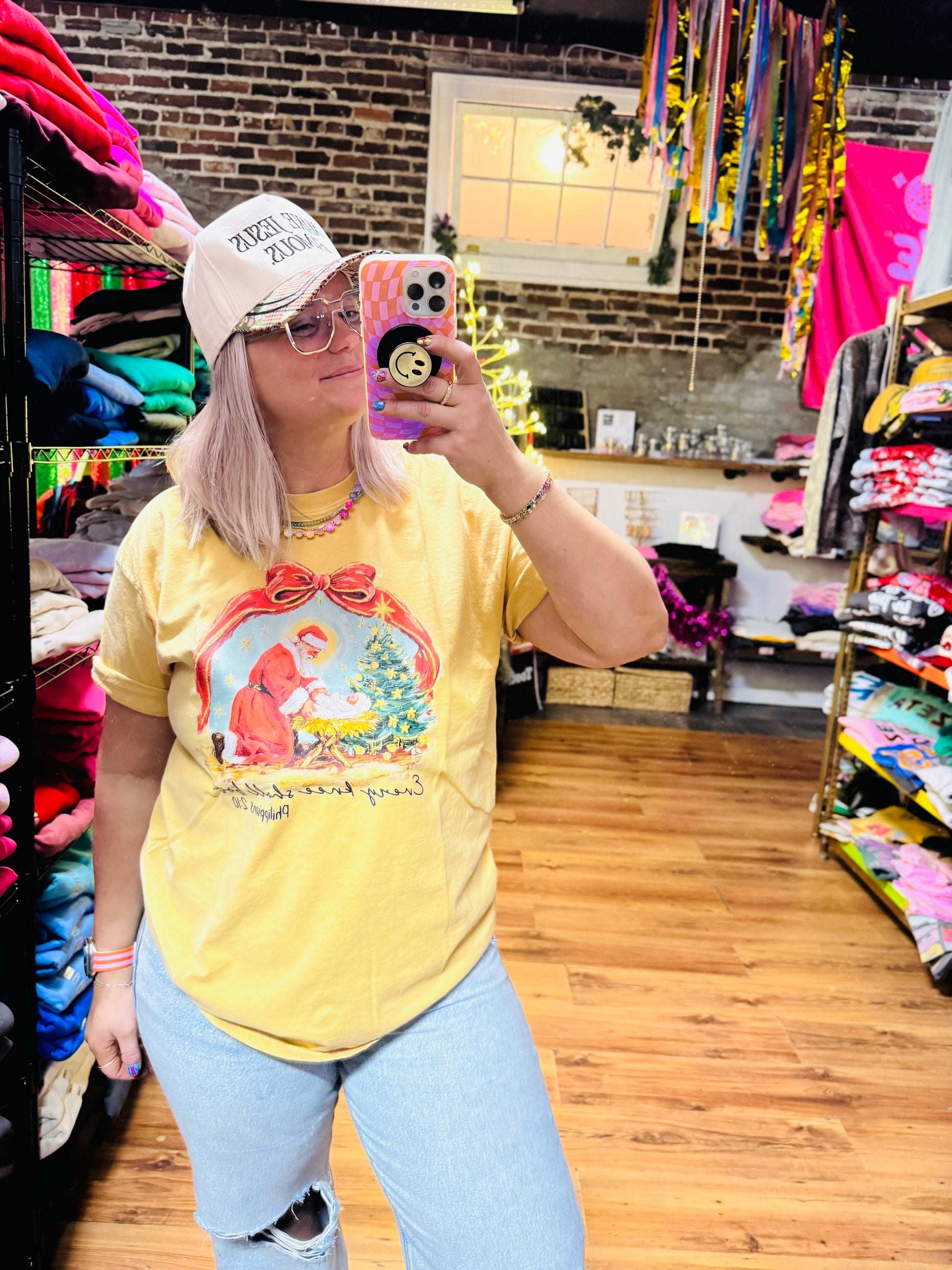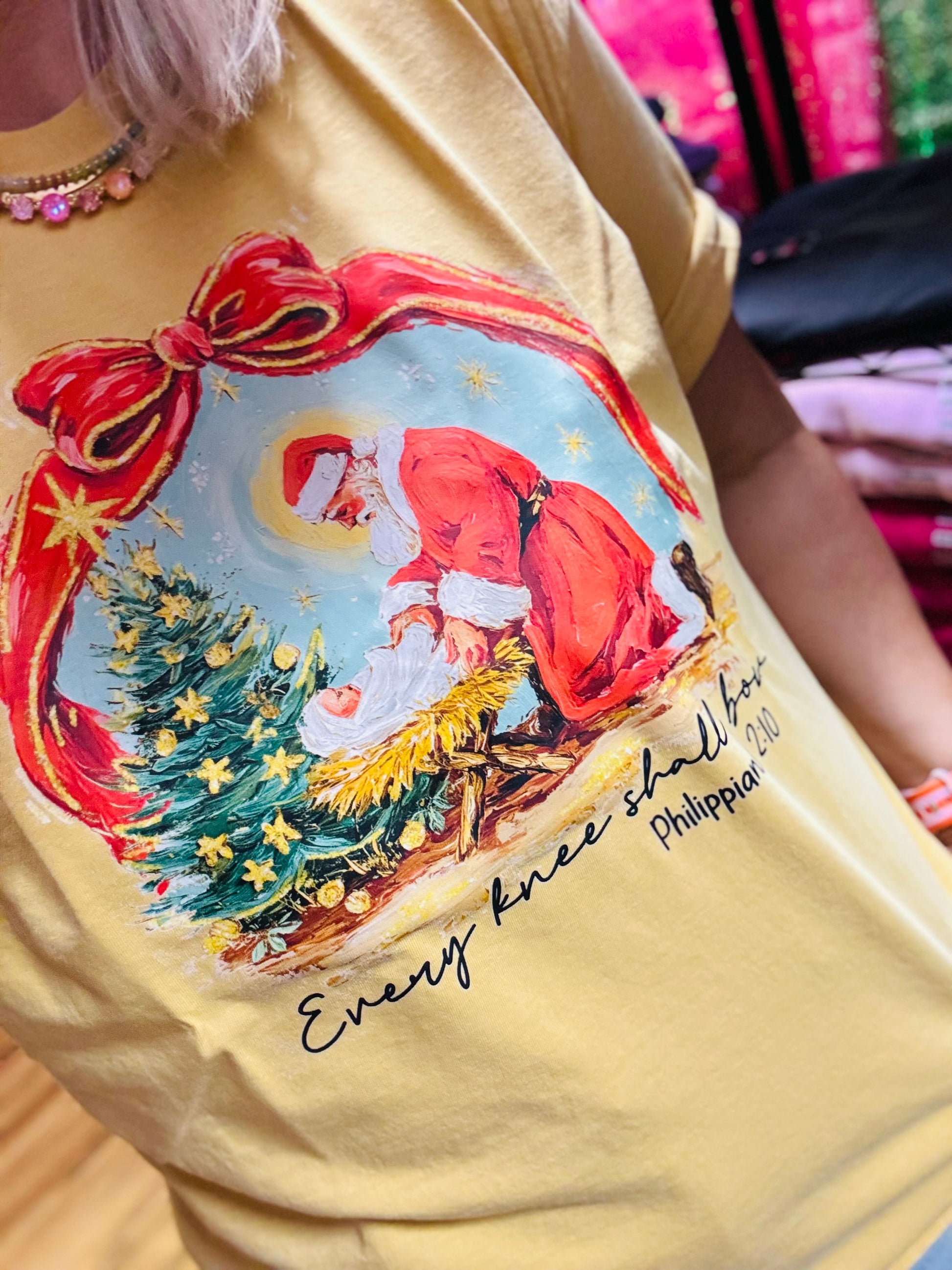 Celebrate the true meaning of the holiday season with our Every Knee Shall Bow tee or sweatshirt. This Christmas design serves as a reminder of the humility and reverence we should have towards the birth of Jesus. Show your faith and spread the message with this unique and meaningful piece.