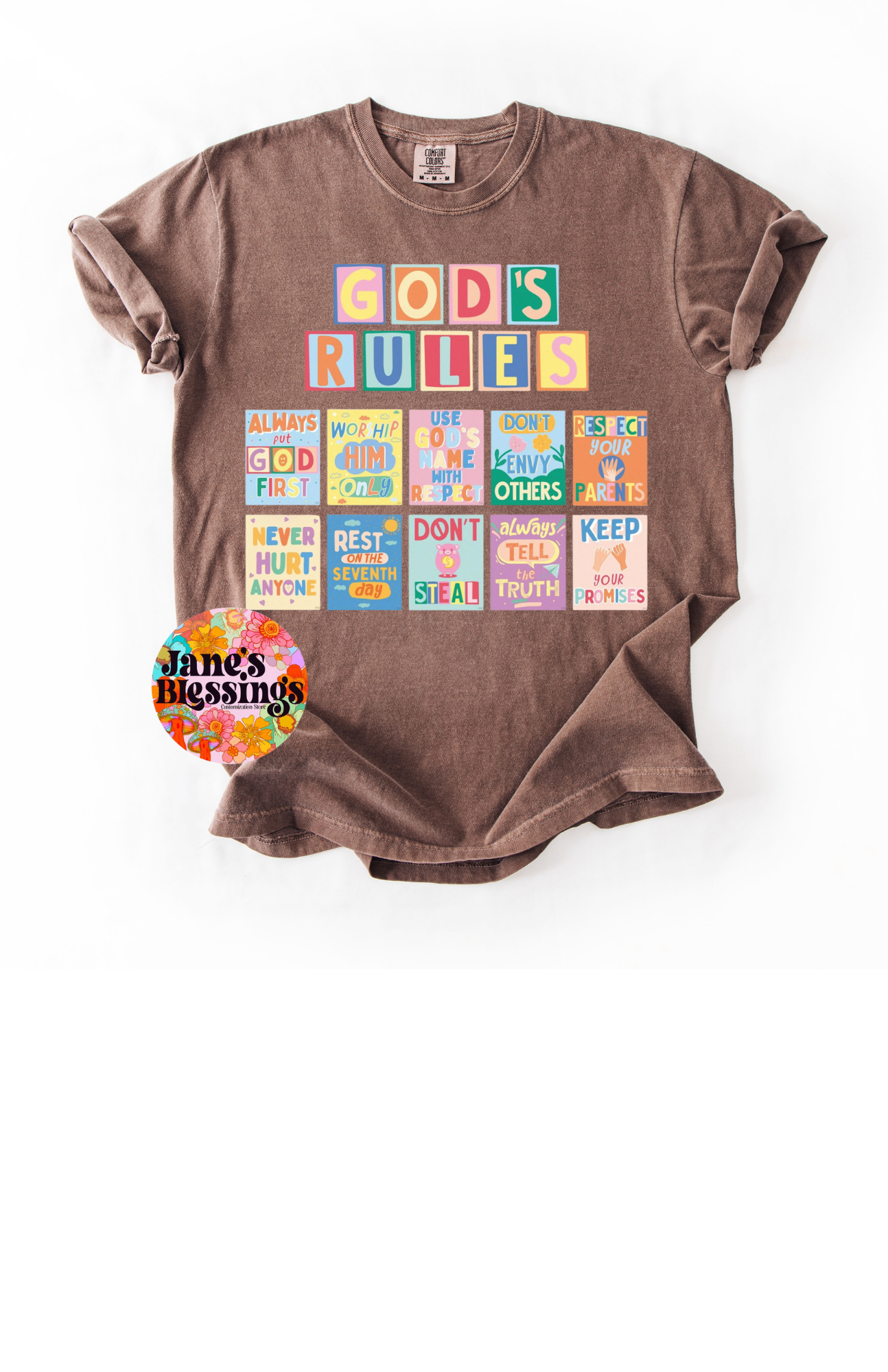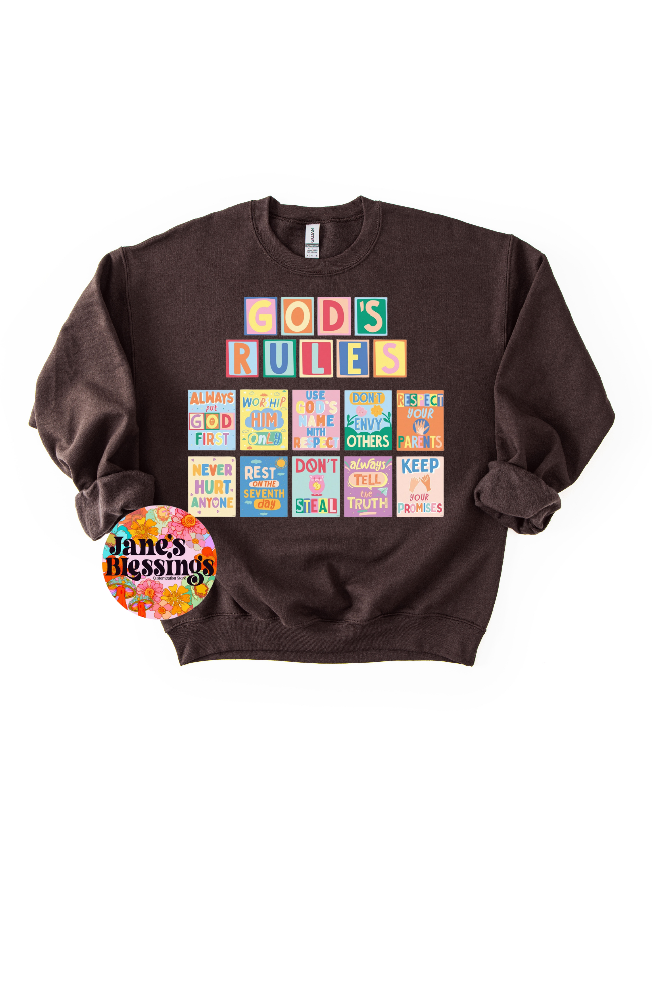 God's Rules is the ultimate Christian apparel, featuring a tee or sweatshirt that proudly states "God's rules". Show your devotion and spread the message with this powerful design. Made with high quality materials, it's perfect for any casual or worship setting. Get yours today and let the world know who you follow.