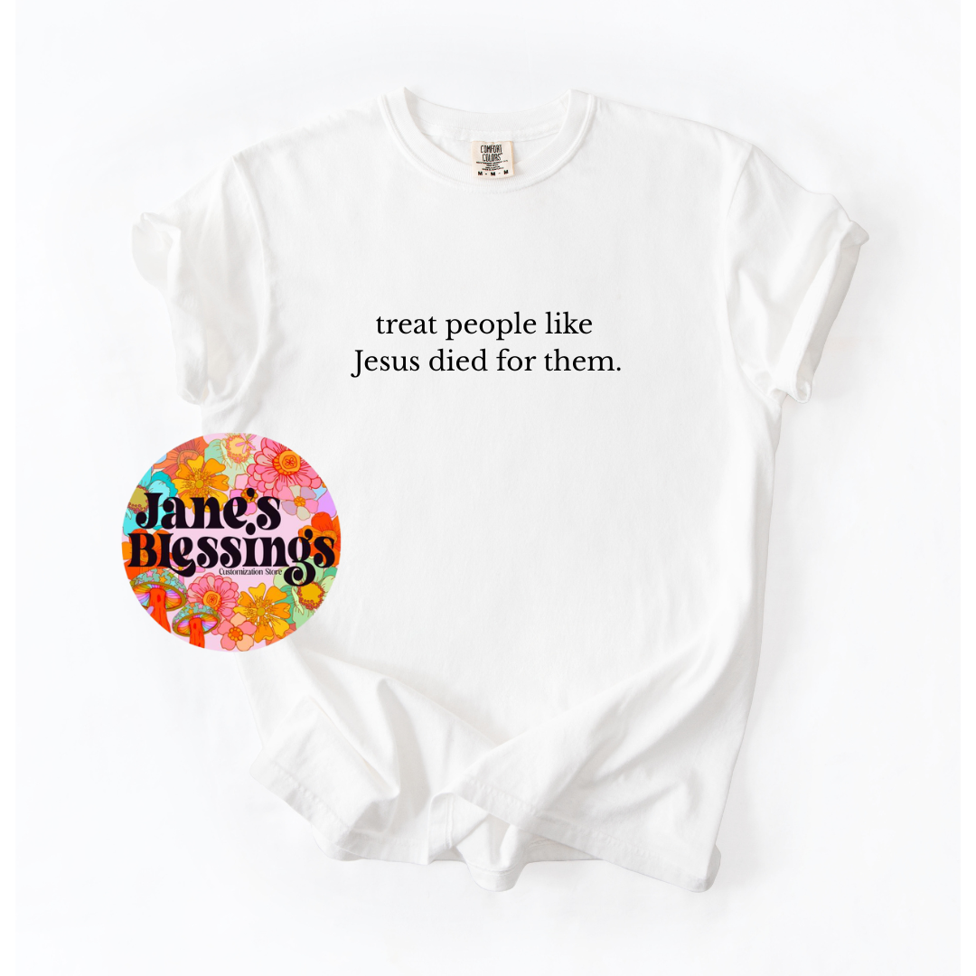 Show kindness and love to those around you with our "Like Jesus Died for Them" tee. Spread a message of compassion with this stylish reminder to treat others with the same unconditional love that Jesus showed. Let's make the world a better place, one shirt at a time.