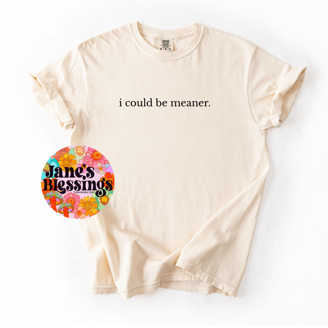 Say it with a wink in the "I Could Be Meaner" tee. Made from soft Comfort Colors fabric, this simple shirt provides a relaxed fit and all-day comfort. Perfect for those playful moments when your attitude needs a little extra edge.