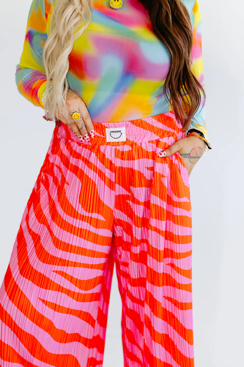 A little wild, totally wearable. The Zebra Heat Plissé Pants were made for doing the most… effortlessly. Lightweight, flowy, and just loud enough with a bold zebra print and comfy elastic waist that feels like pajamas (but way cuter). These are the throw on and go pants you’ll keep reaching for.
