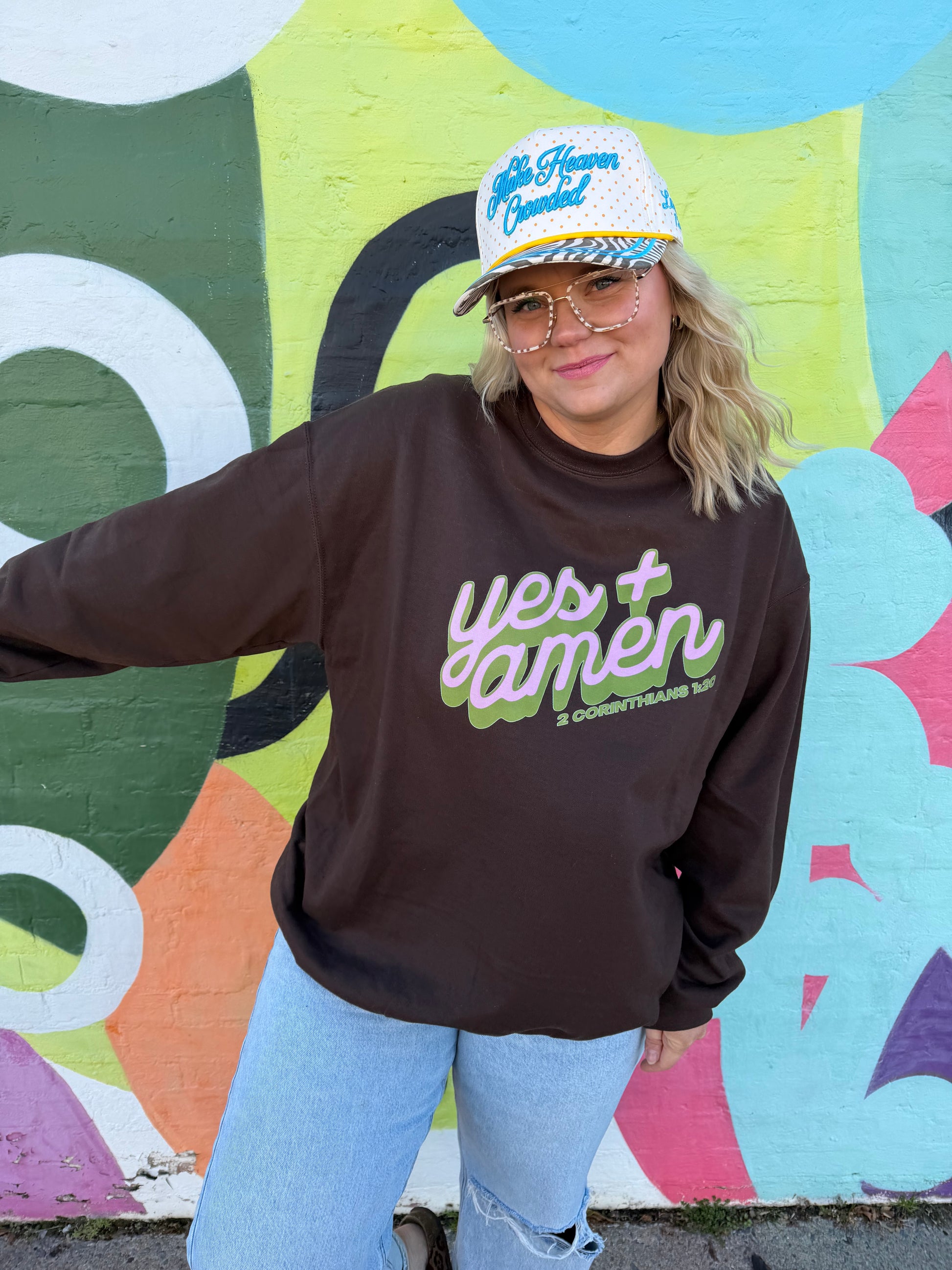 Wrap yourself in affirmation with this cozy brown sweatshirt featuring the uplifting message "Yes & Amen." Perfect for those days when you need a little extra encouragement, this playful piece combines comfort with spiritual vibes. The rich brown tone pairs effortlessly with any outfit, making it your go-to layer for casual outings, coffee runs, or quiet moments of reflection. Soft, warm, and wonderfully wearable—because saying yes to life deserves a sweatshirt that gets it.