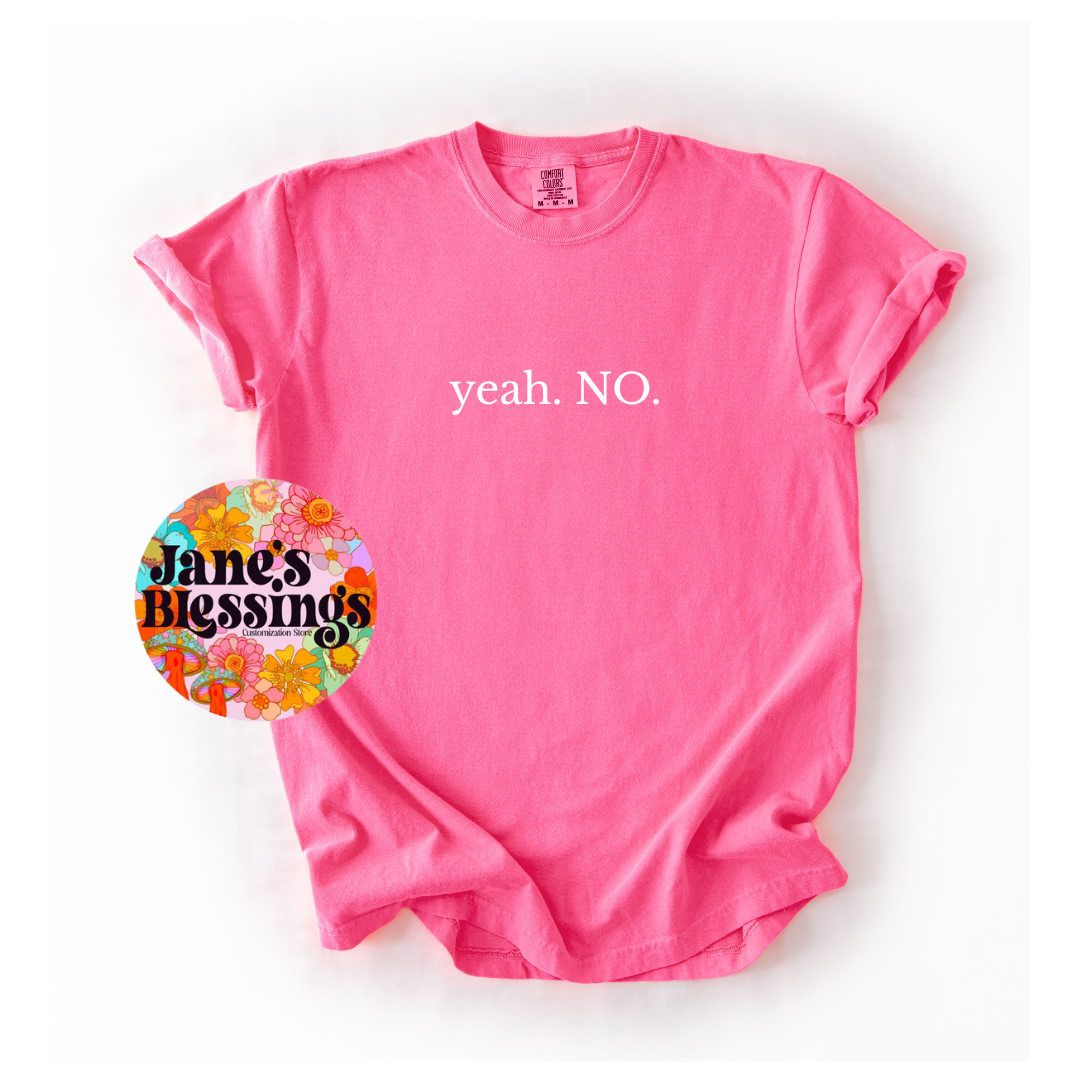 Keep it simple and sassy with the "Yeah. No." tee. Made from soft Comfort Colors fabric, this laid-back shirt offers lasting comfort and a relaxed fit. It’s the perfect playful way to say what you really mean without saying too much.
